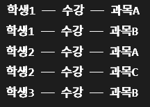 - 예를 들어, 하나의 학생 엔티티가 여러 과목 엔티티와 연결될 수 있고, 하나의 과목도 여러 학생과 연결될 수 있음