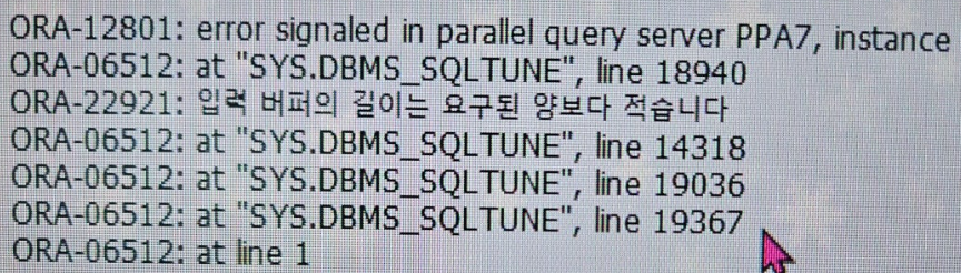 ORA-06512: at "SYS.DBMS_SQLTUNE", line 19367