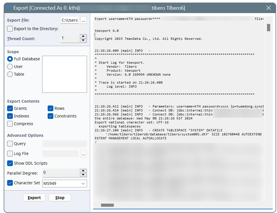 Object DDL문 내 컴퓨터에 백업시키고 싶을때, Tibero Studio에 Export 기능을 쓰면 편하다.