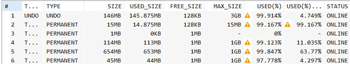 : 테이블스페이스의 데이터 파일에 자동 확장이 설정되어 있지 않아, 필요 시 공간이 자동으로 늘어나지 않는 경우.