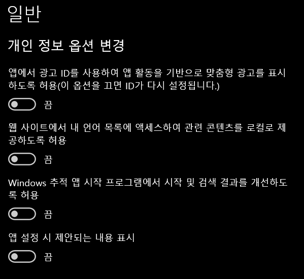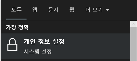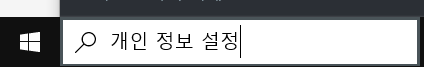 1) 윈도우 좌하단 검색창에 "개인 정보 설정" 검색