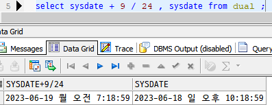 위 결과 Sysdate 결과값은 영국시간 기준 날짜가 출력됨