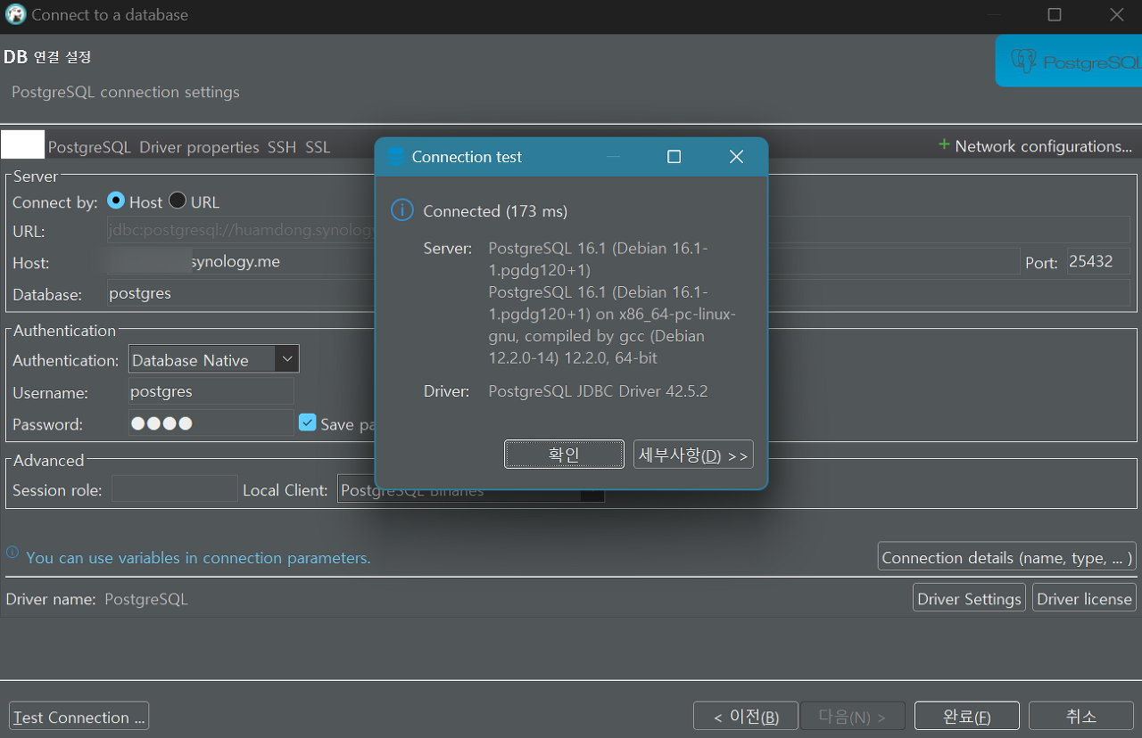 - 로컬포트 : 25432 ( 외부접속 포트 )