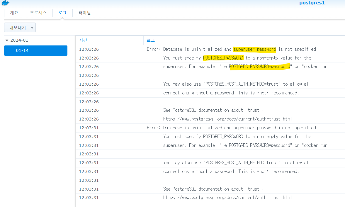 - POSTGRES_PASSWORD : 1234 ( 지정하지 않으면 DB가 실행되지 않음 )