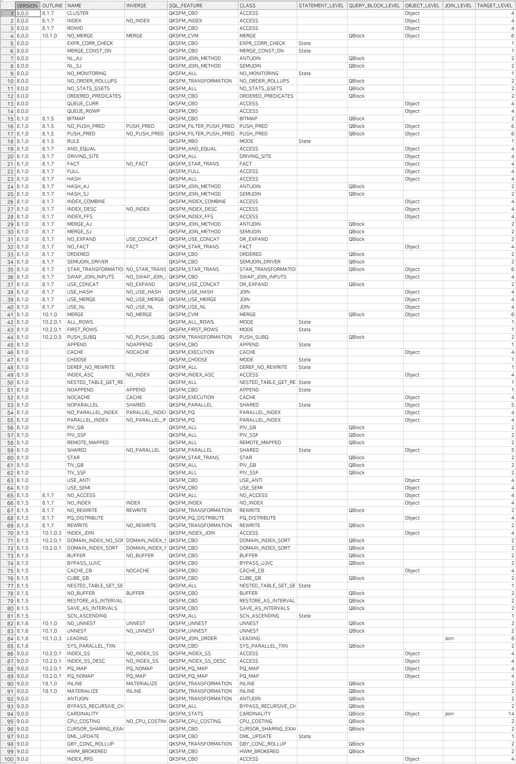 FROM V$SQL_HINT